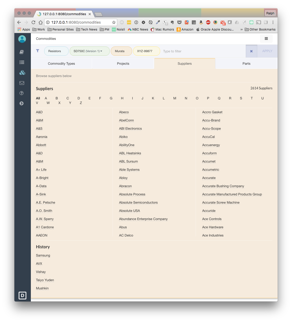 Sourcing Advantage 2.0 Mockups | Filtering Prototype Screenshots